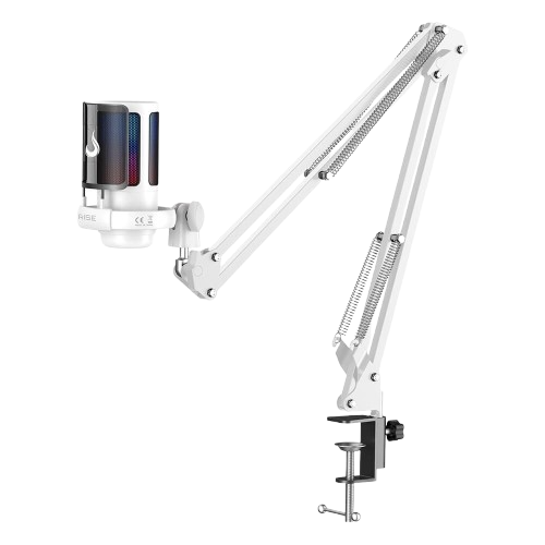 Microfone Gamer Rise Mode Elite 08 com Suporte de Mesa, RGB, USB-C - RM-ME-08-W